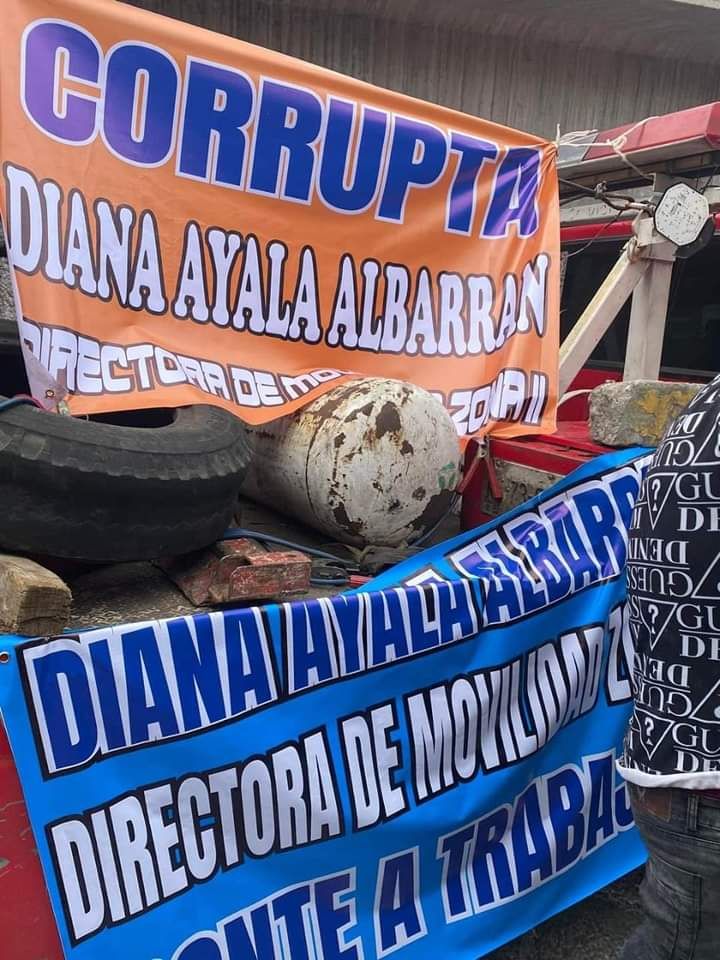 Los inconformes se concentraron a la altura de San Mateo Atenco, con sus unidades donde escribieron leyendas de protesta como: “Gobernadora Regularízate no existe Sibaja te miente”, “No más operativos Fuera Sibaja Viva México” y “No más baches, Sibaja Miente”.