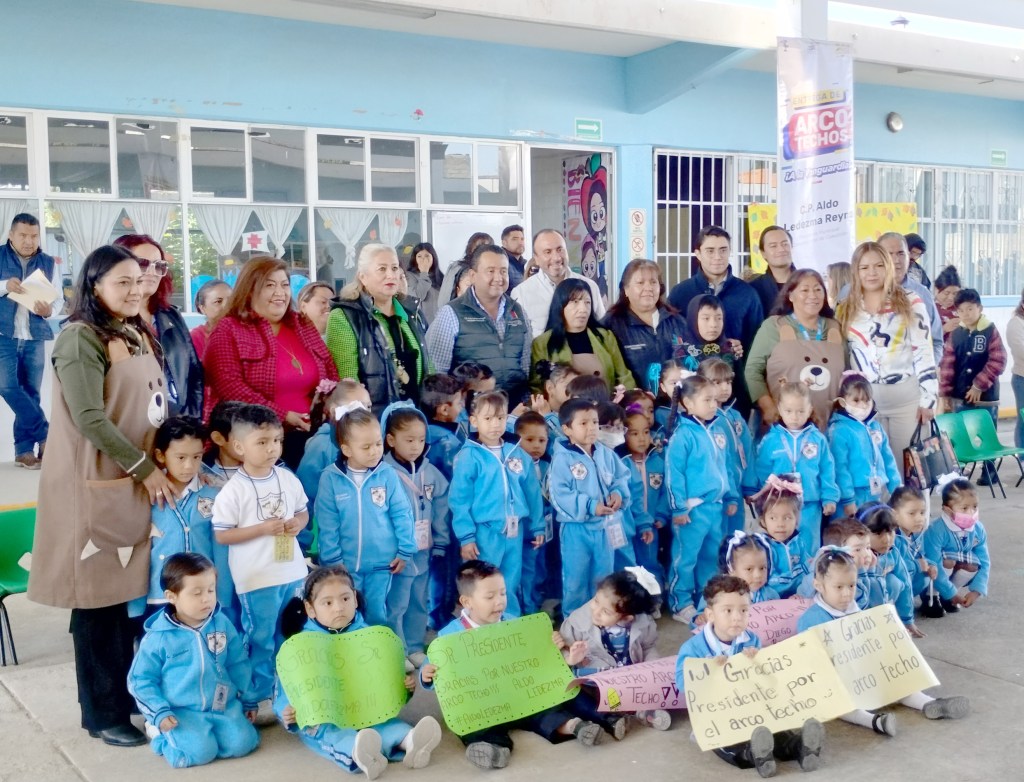 Cuautitlán, Méx.- Ante escolapios y profesores del Jardín de Niños “Diego Rivera”, localizado en el Fraccionamiento “Paseos del Bosque”, el Presidente Municipal Constitucional de Cuautitlán, C.P., Aldo Ledezma Reyna, inauguró la obra de construcción del Arcotecho, a fin de que los alumnos de este centro escolar cuenten con las herramientas necesarias para que no dejen de prepararse y puedan enfrentar, de mejor manera, los retos del futuro.