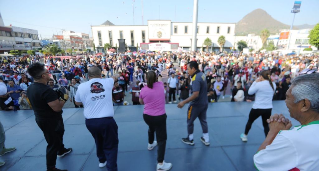 La iniciativa promovida por la presidenta de la República Claudia Sheinbaum Pardo, en el marco del Día Internacional del Deporte para el Desarrollo y la Paz, tiene como objetivo promover la activación física y la participación comunitaria, por lo que hoy en todas las plazas públicas se llevó a cabo esta activación física.