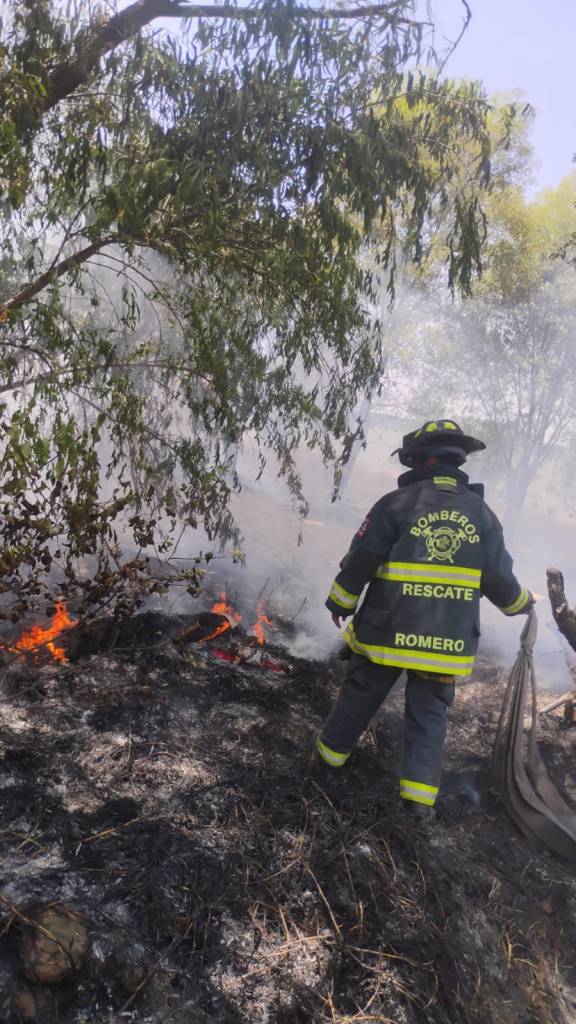 Tepotzotlán, Méx.- El personal de Bomberos de la Dirección Civil de #Tepotzoltlán ya controla el incendio que se desató este domingo en un terreno baldío, ubicado en Libramiento Sur esquina con Av. del Trabajo, Barrio #Texcacoa y #Capula. Los trabajos que hoy lunes realizan son para su sofocación total.