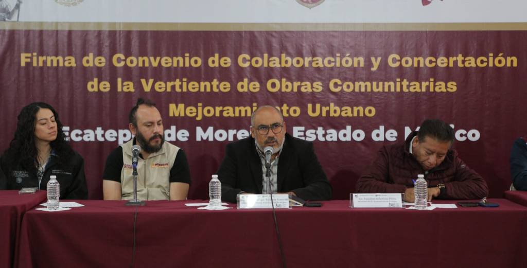Ecatepec, Méx.- Obras de gran impacto social construirán en Ecatepec el Gobierno Municipal y la Secretaría de Desarrollo Agrario, Territorial y Urbano (SEDATU), que celebraron la Firma de Convenio de Colaboración y Concertación de la Vertiente de Obras Comunitarias Mejoramiento Urbano.