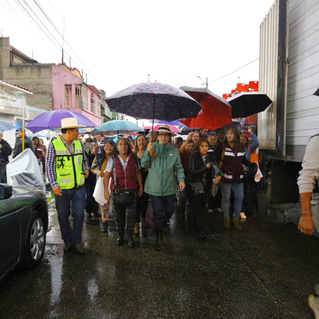 Acompañada de colonos, en su gran mayoría mujeres, Cisneros Coss recorrió en una tarde lluviosa el Sendero Seguro, de avenida San Andrés hasta el Deportivo Bicentenario de dicha comunidad, una de las más pobladas de Ecatepec y entrada a la zona de San Andrés de La Cañada.