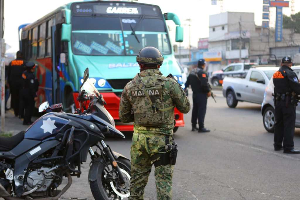 Ecatepec, Méx.- Con la intención de inhibir robos a pasajeros y a transeúntes, la Dirección de Seguridad Ciudadana y Tránsito Municipal, en coordinación con personal de Fuerza de Tarea de la Secretaría de Marina, reforzó los operativos de vigilancia en transporte público en vialidades y zonas limítrofes del municipio, sobre todo en puntos con mayor incidencia delictiva.
