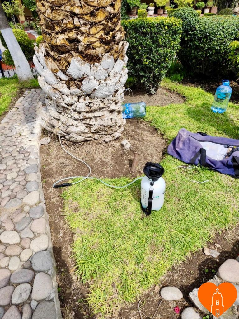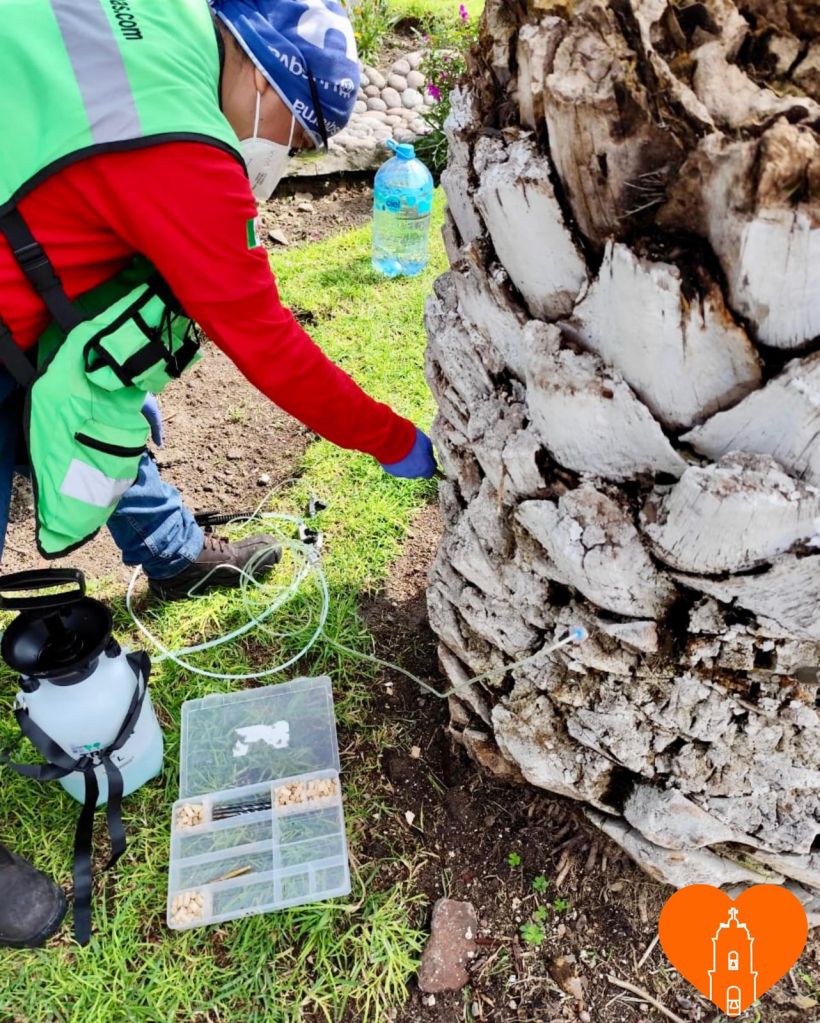 Dicho proceso consistió, explicó la funcionaria, en la aplicación de endoterapia arbórea, también conocida como inyección al tronco, en 14 palmas de Phoenix canariensis y Washingtonia robusta ubicadas en el primer cuadro de Tepotzotlán.