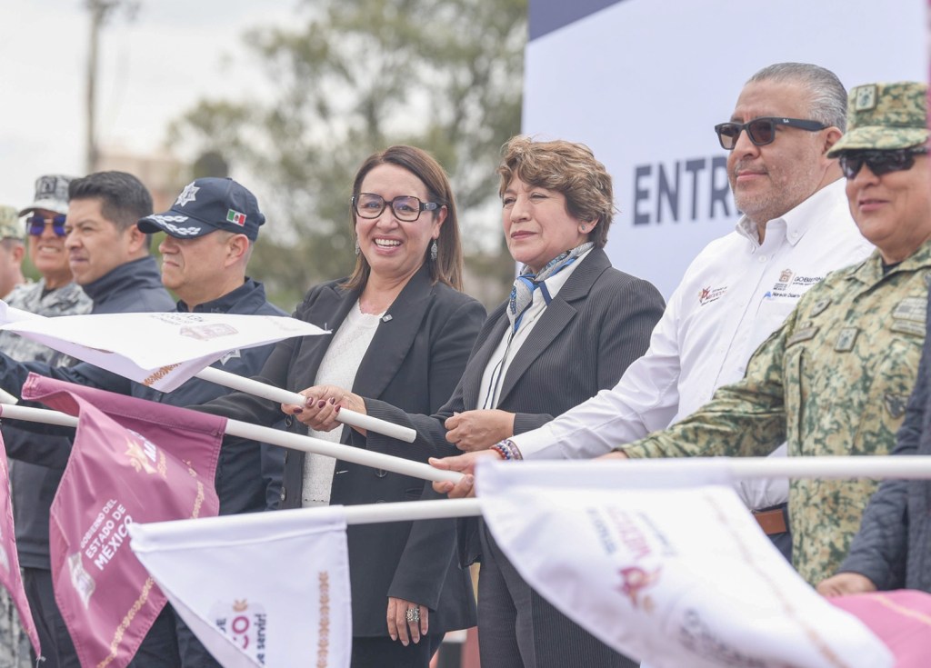 Azucena Cisneros y Delfina Gómez, después de encabezar la Mesa de Coordinación para la Construcción de la Paz, en #Ecatepec, revisaron los avances del Mando Unificado Oriente y entregaron 380 patrullas y 75 motopatrullas para Proximidad Social