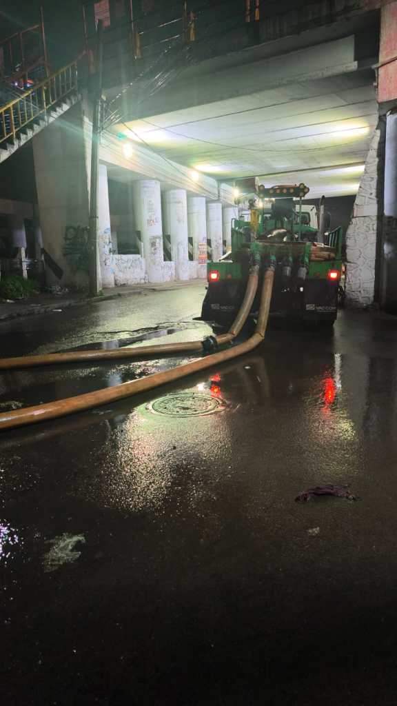 Al lugar acudieron trabajadores que conforma el operativo Tormenta, quienes inmediatamente comenzaron a realizar el desazolve y la limpieza de coladeras, con apoyo de dos vactors y una cuadrilla de 10 personas.