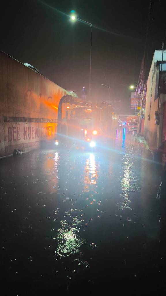 Ecatepec, Méx.- Ante la lluvia constante que se registró está tarde en la parte alta de la colonia Ciudad Cuauhtémoc, el operativo Tormenta se desplegó en avenida Nacional, donde se presentó un encharcamiento que afectó la circulación vehicular.