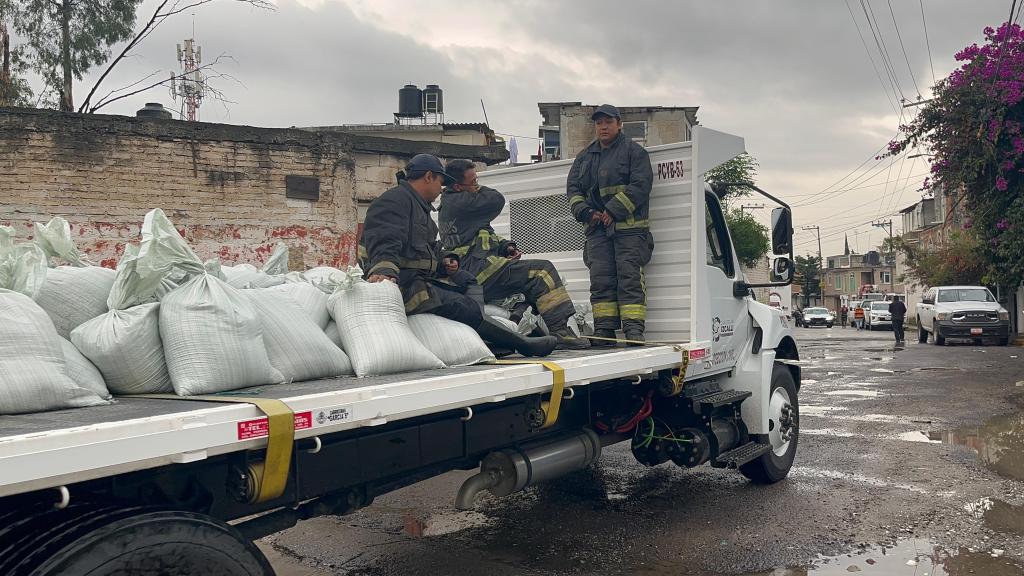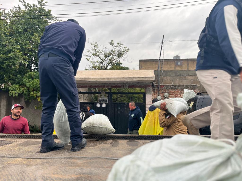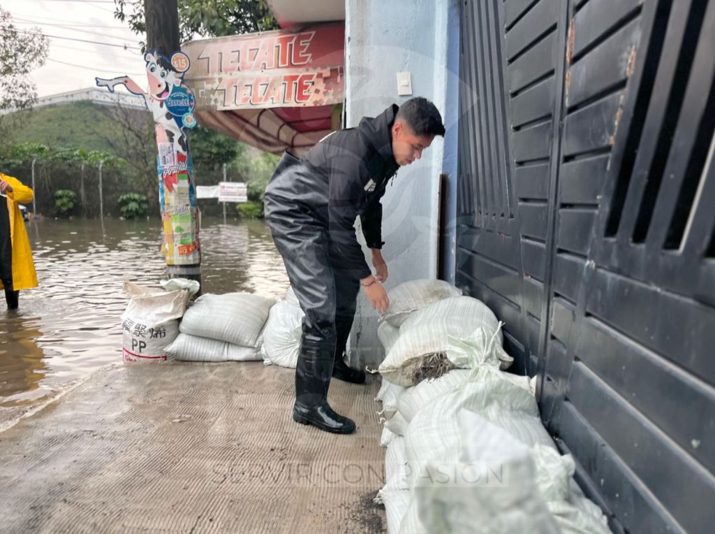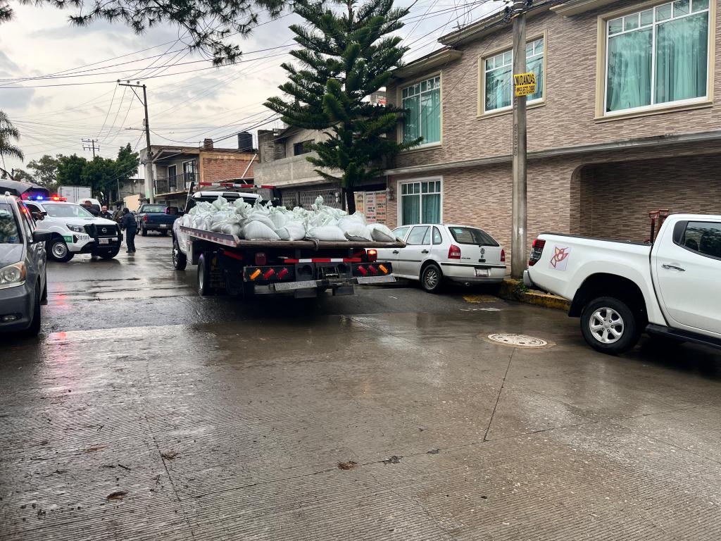 Asimismo, en la zona de Ejidal San Isidro, continúa la colocación de costaleras al exterior de domicilios y sobre las aceras de forma preventiva, a fi n de evitar posibles afectaciones.