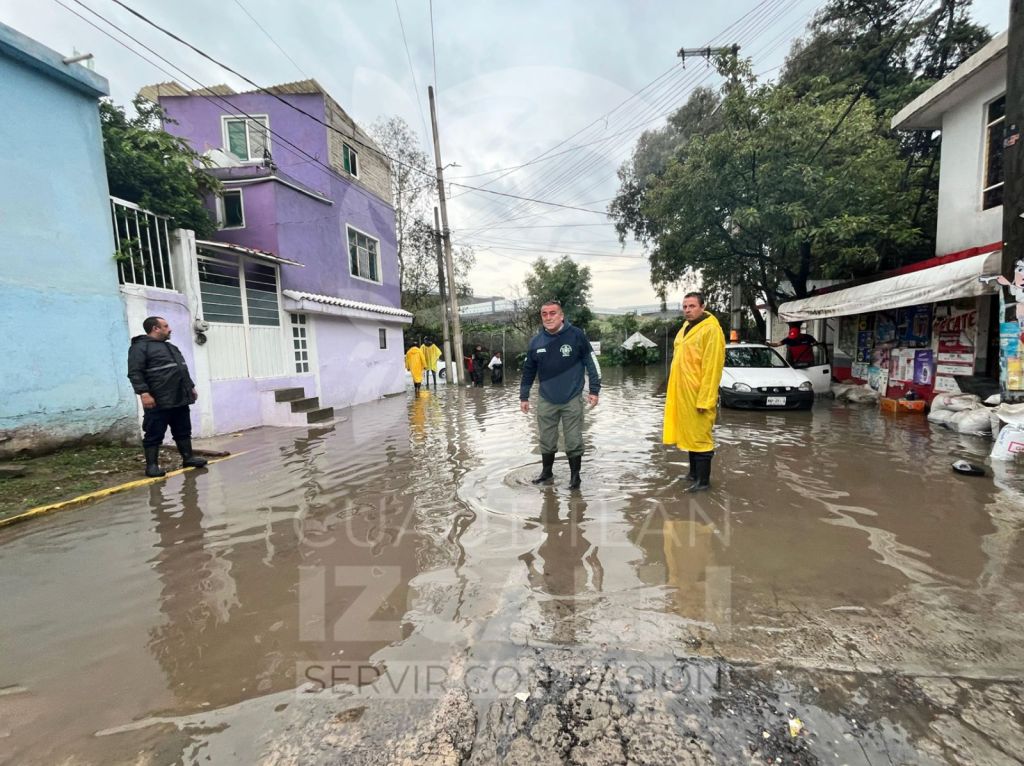 En atención a las anegaciones registradas en algunos puntos del territorio, el Gobierno Municipal informa que elementos de la Coordinación de Protección Civil y Bomberos, de la Comisaría General de Seguridad Ciudadana, en conjunto con brigadas de la Comisión del Agua del Estado de México (CAEM), realizan el desfogue en varios puntos de la colonia Niños Héroes, logrando el descenso de los niveles de agua acumulados.