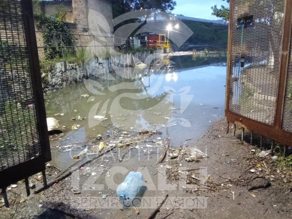 De manera coordinada distintas instancias de gobierno realizan labores de limpieza al interior de la presa, además de encostalamiento en calles aledañas.