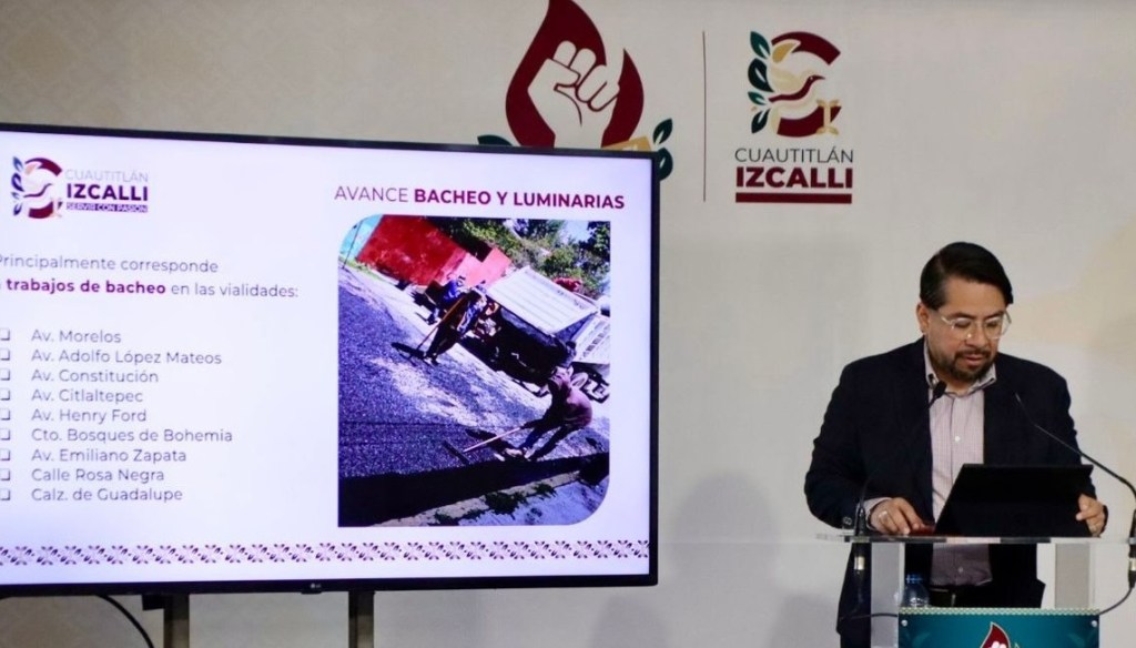 Cuautitlán Izcalli, Méx.- Durante su conferencia de prensa “El Poder del Pueblo” de este lunes, el Presidente Municipal Daniel Serrano, informó que con los trabajos realizados la semana pasada, se alcanzó una cobertura de 2 mil 760 m2 de bacheo, gracias al tendido de 308.2 toneladas de mezcla asfáltica en varias de las más importantes avenidas del territorio municipal, alcanzando el gran total de bacheo, mapeo y reencarpetado de 10 mil 653. 5 toneladas de mezcla asfáltica, cifra que representa una cobertura consolidada de 82 mil 605.4 m2 en todo el territorio.