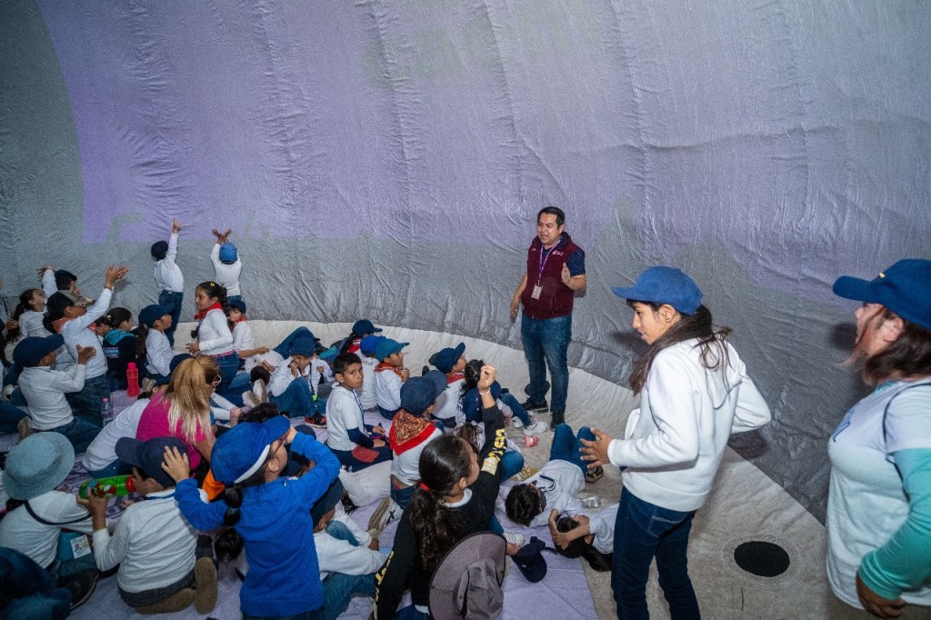 Coacalco, Méx.- Más de 700 niñas, niños y adultos de Coacalco disfrutaron de la segunda visita del Domo Hídrico de la Comisión del Agua del Estado de México (CAEM), donde se presentaron videos sobre temas relacionados con el sector hídrico para promover el cuidado del agua.