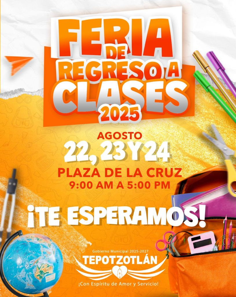 Tepotzotlán, Méx.- La Presidenta Municipal María de los Ángeles Zuppa Villegas anunció la realización de la Feria de Regreso a Clases 2025, que se llevará a cabo del 22 al 24 de agosto en la Plaza de la Cruz de Tepotzotlán, en un horario de 9 de la mañana a 5 de la tarde.