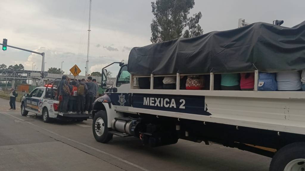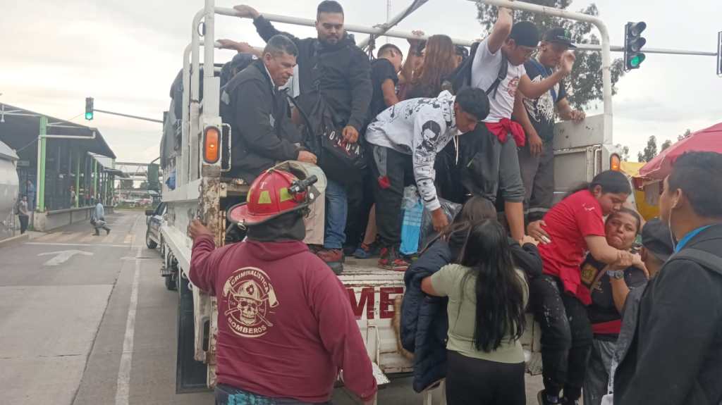 Las personas que quedaron varadas en las estaciones del Mexibús, fueron apoyadas por elementos de Seguridad Ciudadana y Tránsito Municipal para acercarlos a sus destinos en los límites con Tecámac bordo de los camiones Mexica 6, Mexica 5, Mexica 2 y patrullas de la corporación.