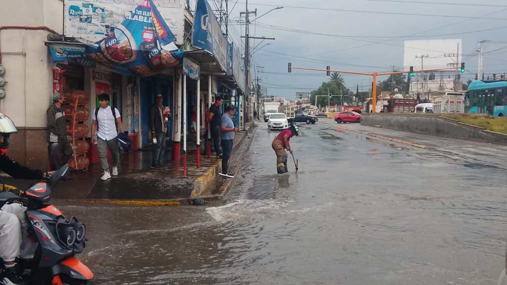 Luego de la intensa precipitación pluvial en la parte alta de Ciudad Cuauhtémoc y Santa María Chiconautla, se generó un encharcamiento en la Avenida Nacional.