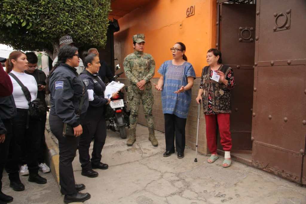 Ecatepec, Méx.- Junto a elementos de la Secretaría de Marina, Guardia Nacional y la policía municipal, la alcaldesa Azucena Cisneros Coss realizó toque de puertas en la colonia El Chamizal, al asegurar que hay un cierre de filas con las fuerzas federales para mejorar la seguridad, generar confianza y estar cerca de la ciudadanía.