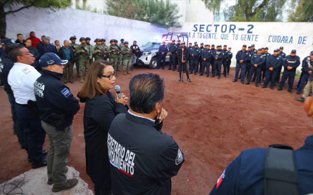 La presidenta municipal recorrió las calles Lázaro Cárdenas y Miguel Alemán Valdez, en la colonia El Chamizal, para presentar a los policías asignados a ese sector y a los de corporaciones federales, quienes también realizarán labores de proximidad social.