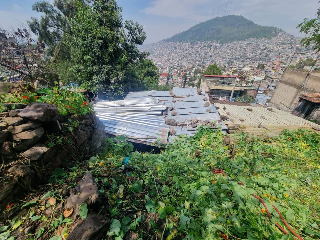Tras la evaluación, se determinó que las intensas lluvias de los últimos días, aunado a la construcción que tiene falta de recursos y materiales, se generó el deslave de la barda que es parte de la vivienda.