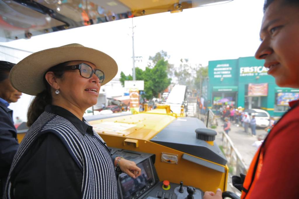 En compañía de vecinos y servidores públicos, la alcaldesa fue testigo del arranque de los trabajos de la moderna máquina en avenida Alta Villa, de dos mil 752 metros de longitud, donde se realiza el perfilado de asfalto, la aplicación de emulsión asfáltica, la colocación y nivelación de asfalto y la compactación.
