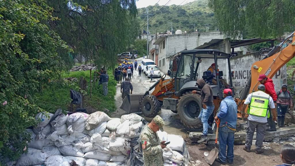 En este sentido, el gobierno municipal realiza, con apoyo de Marina, trabajos de mitigación de riesgos con el dragado del lecho y la colocación de mil costales a lo largo de unos ocho metros, con altura de dos a tres metros para direccionar el cauce, además del derribo de un árbol de siete metros de altura ubicado en la barranca y que representaba un peligro en la zona.