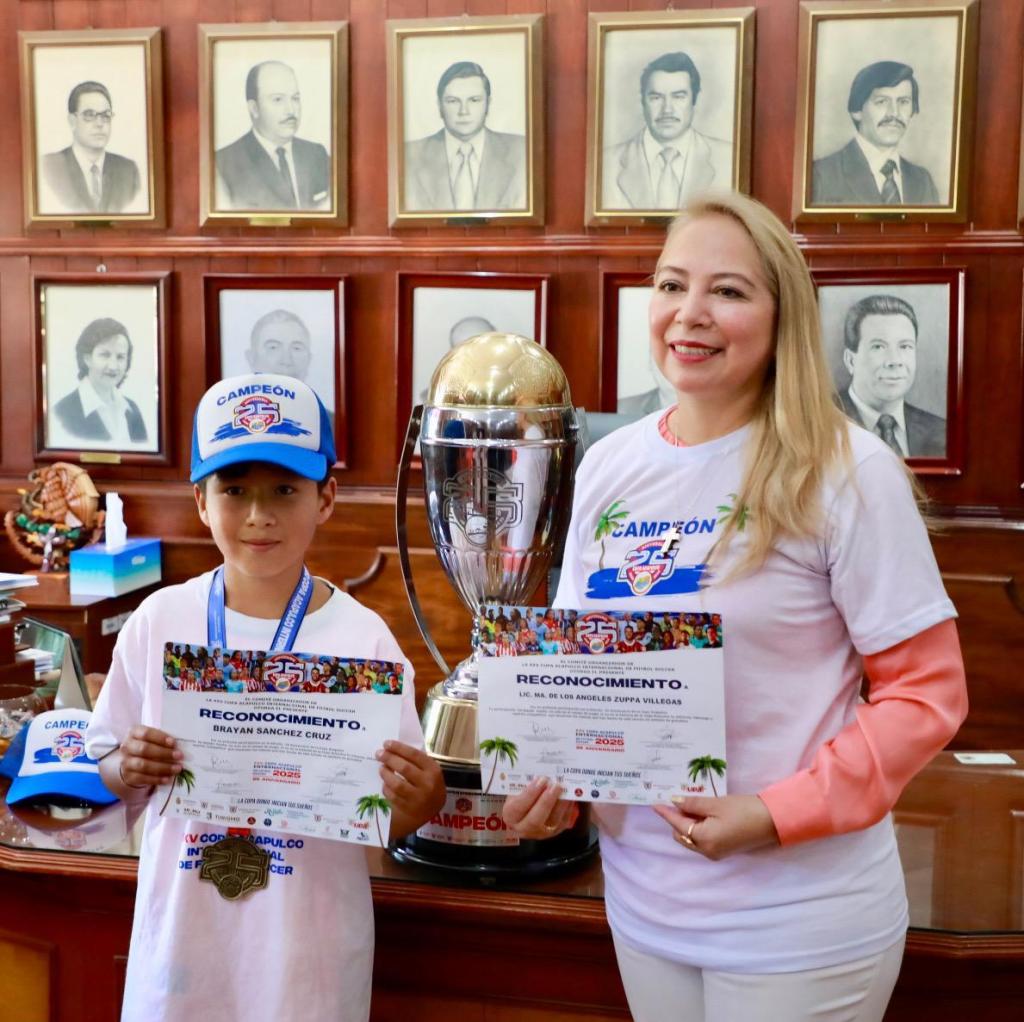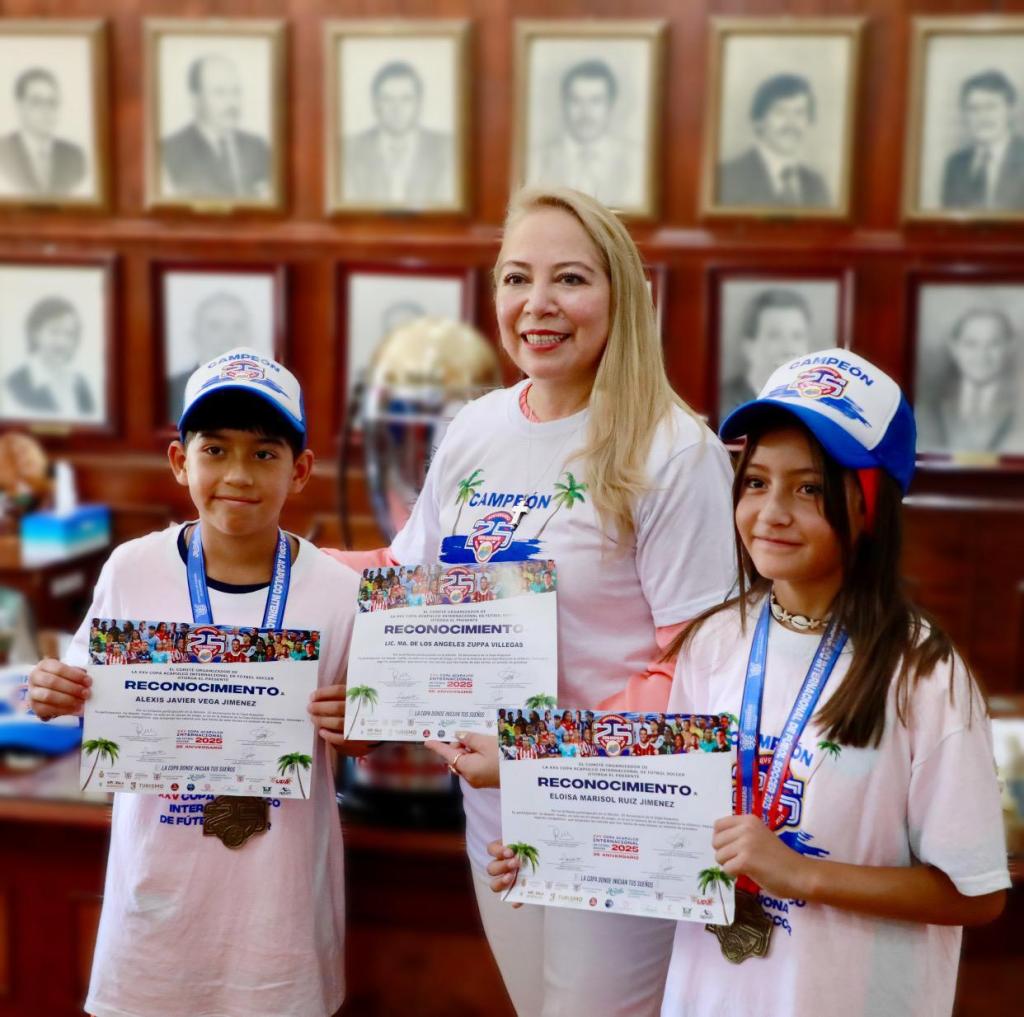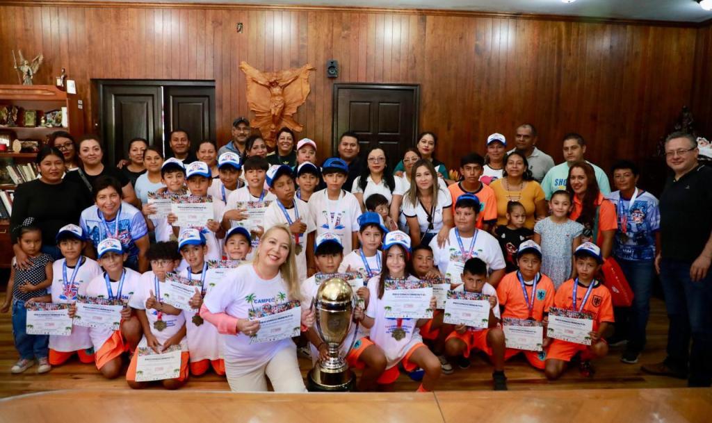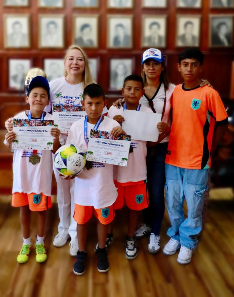 Tepotzotlán, Méx.- La Presidenta Municipal, María de los Ángeles Zuppa Villegas abrió las puertas del Palacio Municipal, para recibir con los brazos abiertos y felicitar personalmente a las niñas y niños de la Selección Tepotzotlán, que ganaron el campeonato de la Copa Acapulco 2025 en la categoría 2014-2025.