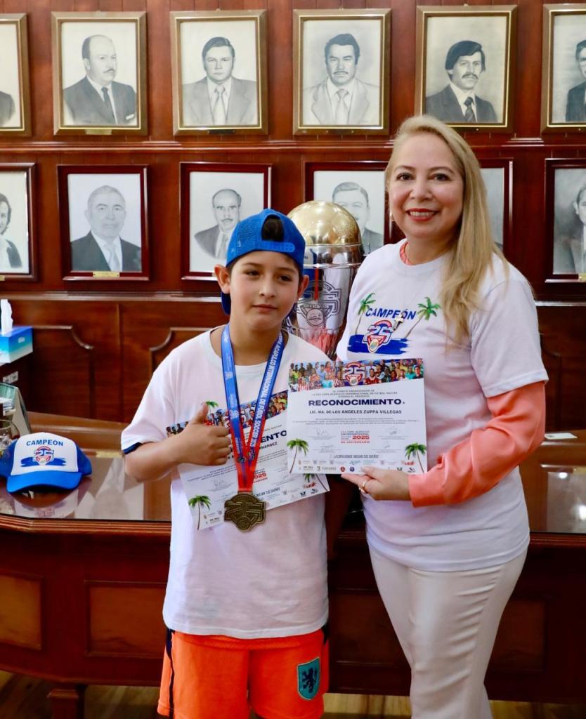 La Alcaldesa expresó su alegría, emoción y orgullo por el logro de los pequeños futbolistas, y reafirmó su compromiso con el impulso a la niñez. “Como Presidenta Municipal siempre cuentan con mi apoyo, sobre todo si se trata de educación y deporte. Vamos a seguir trabajando de manera conjunta padres de familia, alumnos y gobierno”, enfatizó.