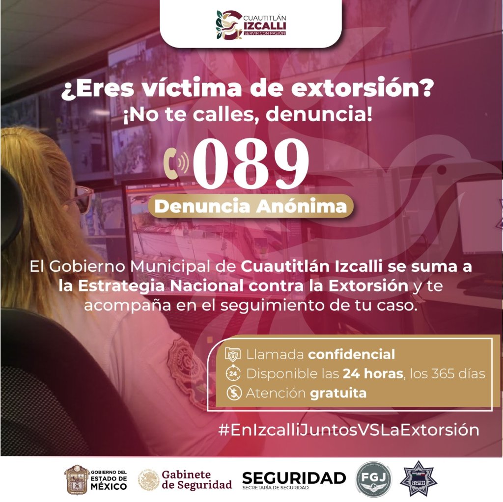 En Cuautitlán Izcalli, de enero a julio de 2025, se registró una disminución del 24.5% en el delito de extorsión, en comparación con el mismo periodo del 2024.