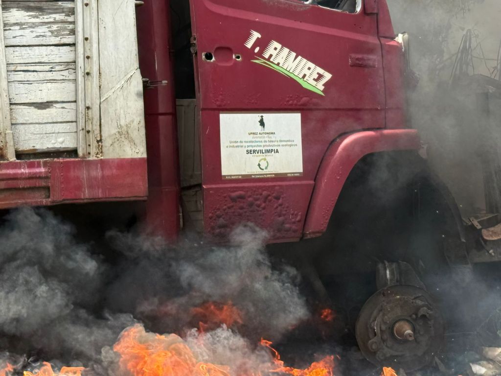 En el lugar se ubicaron camiones chatarra con logotipos de UPREZ Autónoma, Unión de Recolectores de basura doméstica e industrial, de recolectores de basura, los cuales fueron abandonados cargados con toneladas de desechos que se acumularon en el predio.
