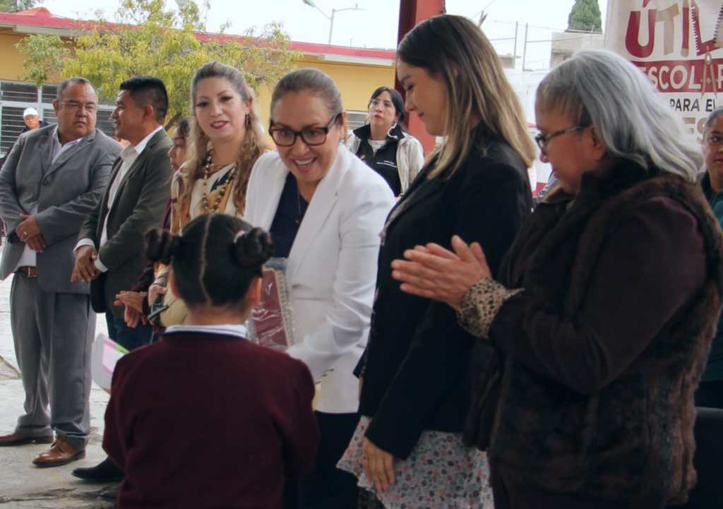 En el evento se entregaron de manera simbólica paquetes de libros y útiles escolares a un alumno de cada grado escolar.