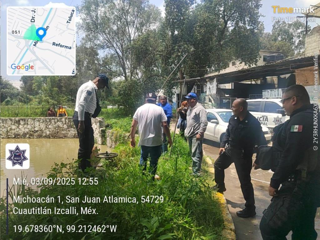 El Gobierno de Cuautitlán Izcalli informa a la ciudadanía sobre la disminución del nivel acumulado en el canal Huayapango, del pueblo de San Juan Atlamica, que ocasionó afectaciones momentáneas en la cerrada Niños Héroes de esta comunidad.