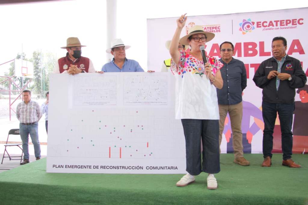 Ecatepec, Méx.- En la zona de El Chamizal, donde el Gobierno Municipal de Ecatepec puso en marcha el Plan Emergente para la Reconstrucción Comunitaria, debido al rezago histórico en materia de servicios, sobre todo en agua potable y drenaje, se reforzarán los trabajos de todas las áreas y “aquí le vamos a echar montón con todos ustedes”, señaló la presidenta municipal Azucena Cisneros Coss al celebrar una Asamblea Comunitaria con vecinos del lugar.