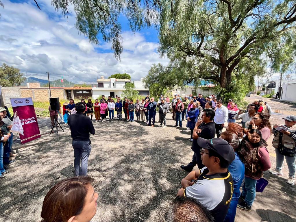 Arranque de la repavimentación de la Avenida Tlalocan en compañía de vecinas y vecinos, así como de autoridades municipales.