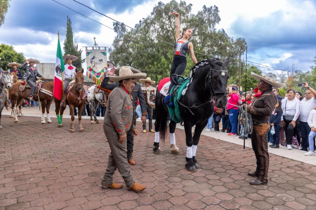 También participó el corporativo CUM, que presentó a diversos grupos de diferentes grados escolares. Los estudiantes marcharon con orgullo y portaron una bandera monumental. Para cerrar el desfile, el grupo ecuestre Capricho realizó suertes charras que deleitaron al público.