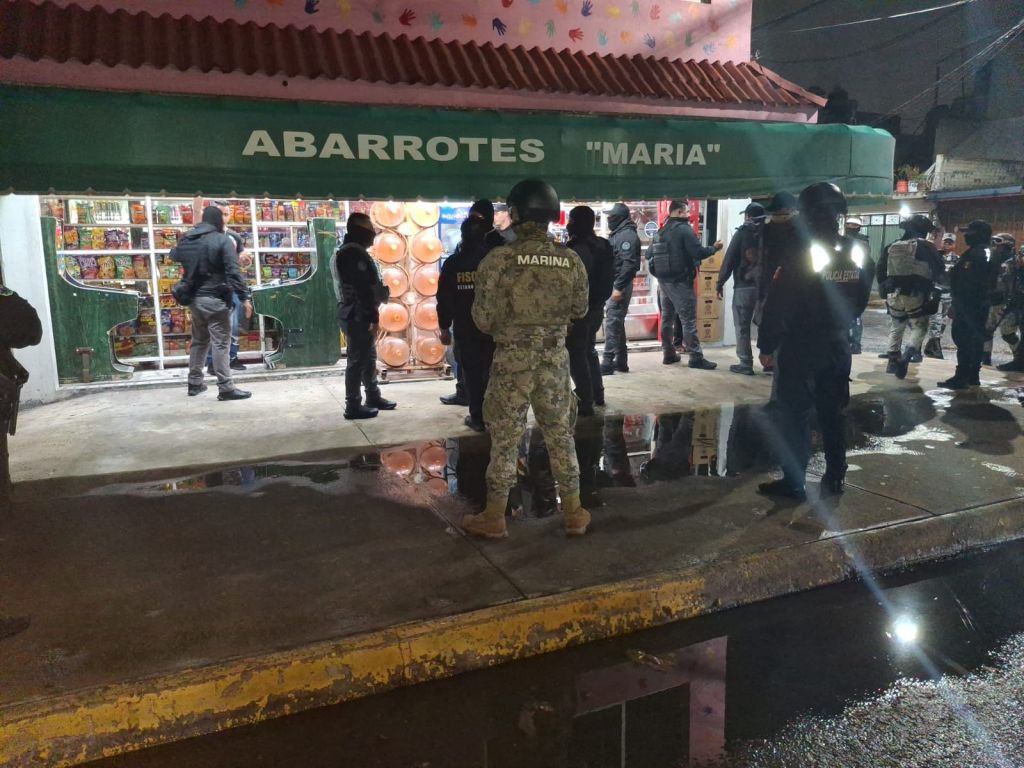 El despliegue táctico es resultado de la detención del líder del grupo criminal que lleva al seguimiento de nuevas indagatorias contra otros integrantes, por lo que durante la madrugada de este jueves en avenida Valle del Don, las fuerzas policiacas detectaron afuera del negocio denominado “Abarrotes María” a sujetos sospechosos intercambiando bolsas y portando objetos aparentemente armas de fuego.