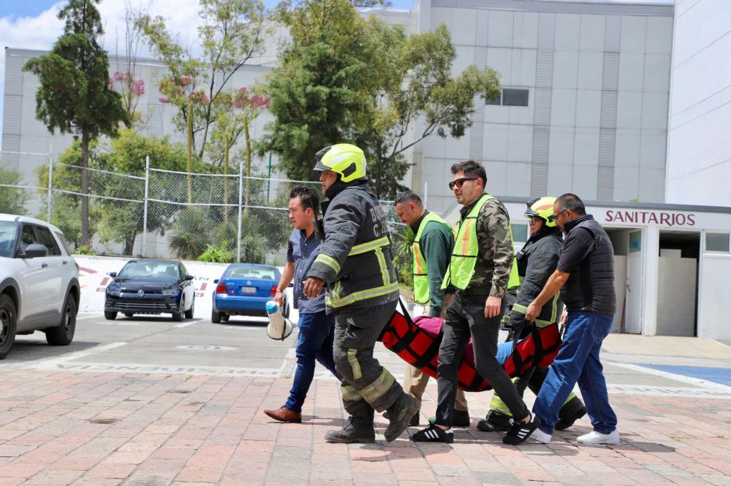 Detalló que como parte del protocolo, en el Palacio Municipal se simuló la atención de cinco personas lesionadas, quienes fueron trasladadas en un tiempo de 5 minutos a la clínica del ISSEMYM, ubicada en este municipio. Una vez incluido este ejercicio, las y los servidores públicos se reincorporaron a sus actividades cotidianas.