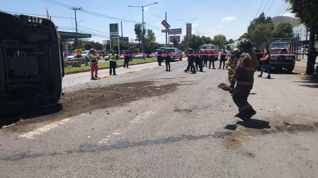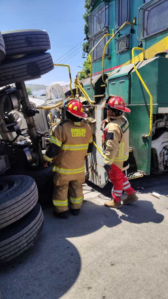 En el lugar laboran elementos de Bomberos, debido a que hubo derrame de diésel y aceite que es controlado con tierra; supervisaron el contenedor que no registró fisuras. En la zona se realizaron cortes viales debido a que se encuentran cerrados ambos sentidos de Vía Morelos, pero ya se realizan maniobras con una grúa para poner en pie la unidad y liberar la vialidad.