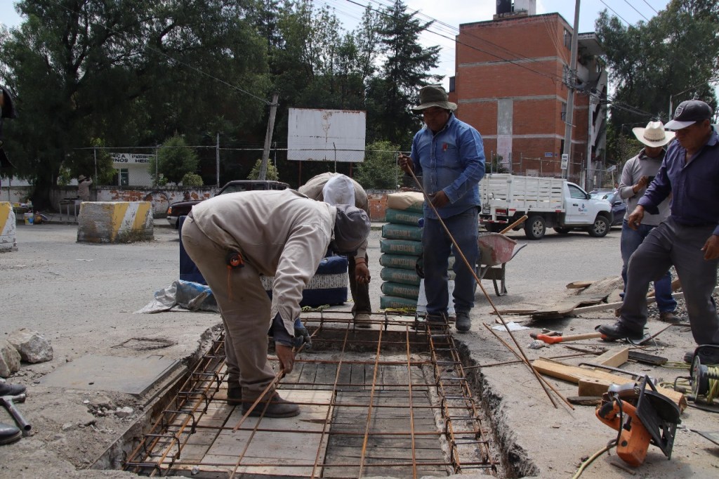 Trabajadores del Organismo operador llevaron a cabo la construcción de una nueva losa de concreto reforzada con acero, la cual mantiene la funcionalidad y permite el resguardo de la línea hidráulica subyacente.