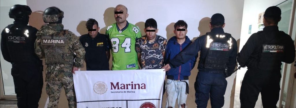 Ecatepec, Méx.- Elementos de la policía municipal, en coordinación con Fuerza de Tarea Marina, detuvieron a cuatro sujetos en la colonia Villas Tulpetlac, quienes formarían parte de una célula delictiva dedicada al narcomenudeo y robo de vehículos y tiendas de conveniencia.