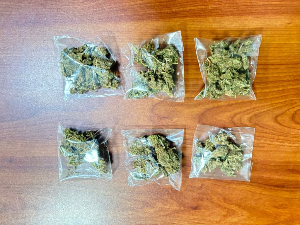 También se les decomisaron cuatro bolsas que contenían una sustancia cristalina con características similares al cristal y ocho bolsas conteniendo hierba seca con las características similares a la marihuana, además de una báscula gramera.