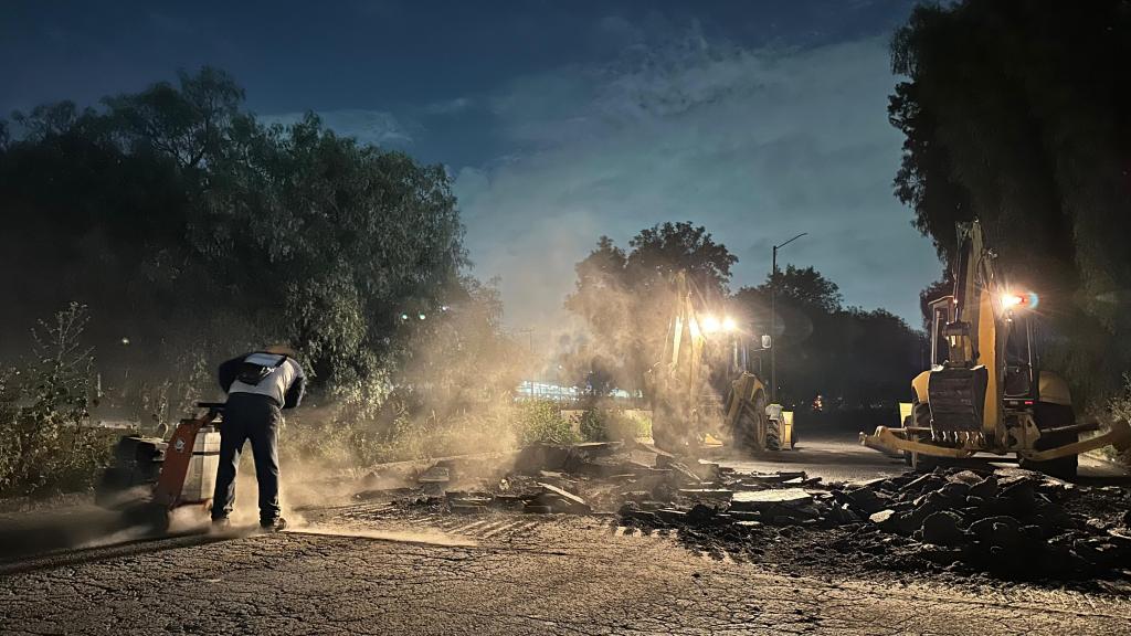 Durante los trabajos nocturnos se alcanzó una cobertura de 571.71 metros cuadrados de esta vialidad, con dirección al sur.