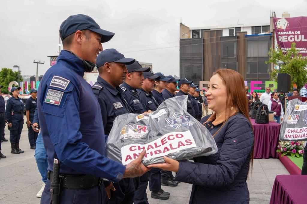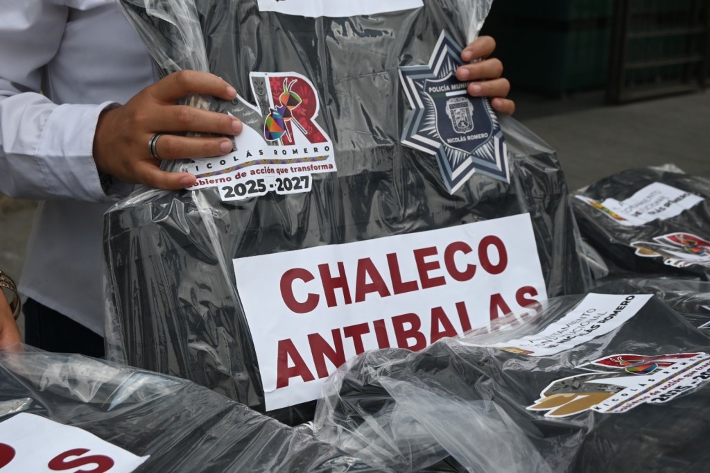 Nicolás Romero, Méx.- Con el objetivo de procurar la seguridad y bienestar de la ciudadanía, la Alcaldesa, Yoselin Mendoza, entregó 210 chalecos balísticos a miembros de la Policía Municipal, para que se encuentren mejor protegidos y puedan seguir cumpliendo con su deber.