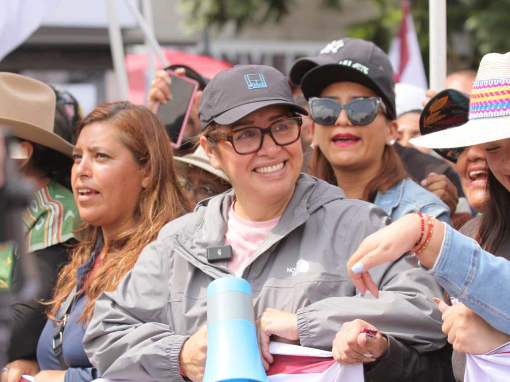Azucena Cisneros junto con las y los ecatepenses caminaron por las calles Juárez, Eje Central Lázaro Cárdenas y 5 de Mayo para ingresar a la explanada del Zócalo capitalino, a fin de escuchar el balance del primer año de gobierno de Claudia Sheinbaum.