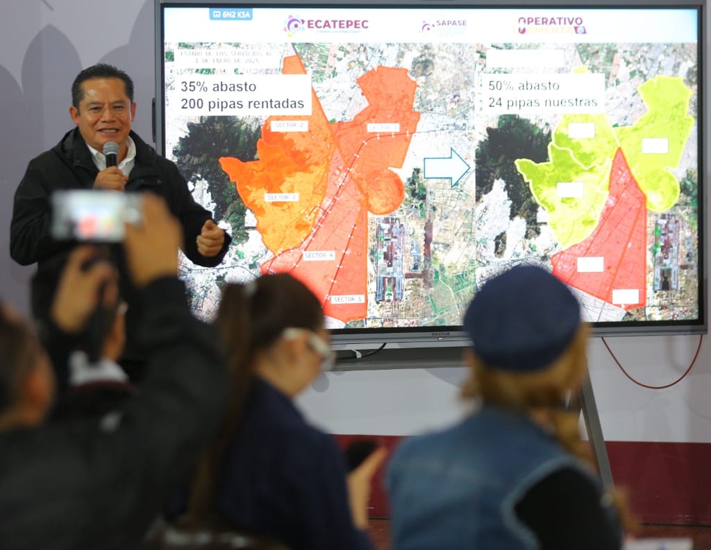 Francisco Vázquez Reyes, director del organismo de agua de Ecatepec (Sapase), informó que mejoraron al 100 por ciento el abasto de agua por la red en 14 colonias y en otras 19 está al 50 por ciento, además de que continúan trabajando para avanzar al respecto.