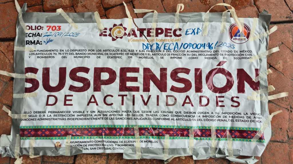 De acuerdo con Protección Civil, la obra fue suspendida el pasado 4 de septiembre porque no contaban con documentación que acreditara el legal funcionamiento y los trabajadores no contaban con medidas mínimas de seguridad, ni extintores ni salidas de emergencia y el área no se encontraba delimitada.
