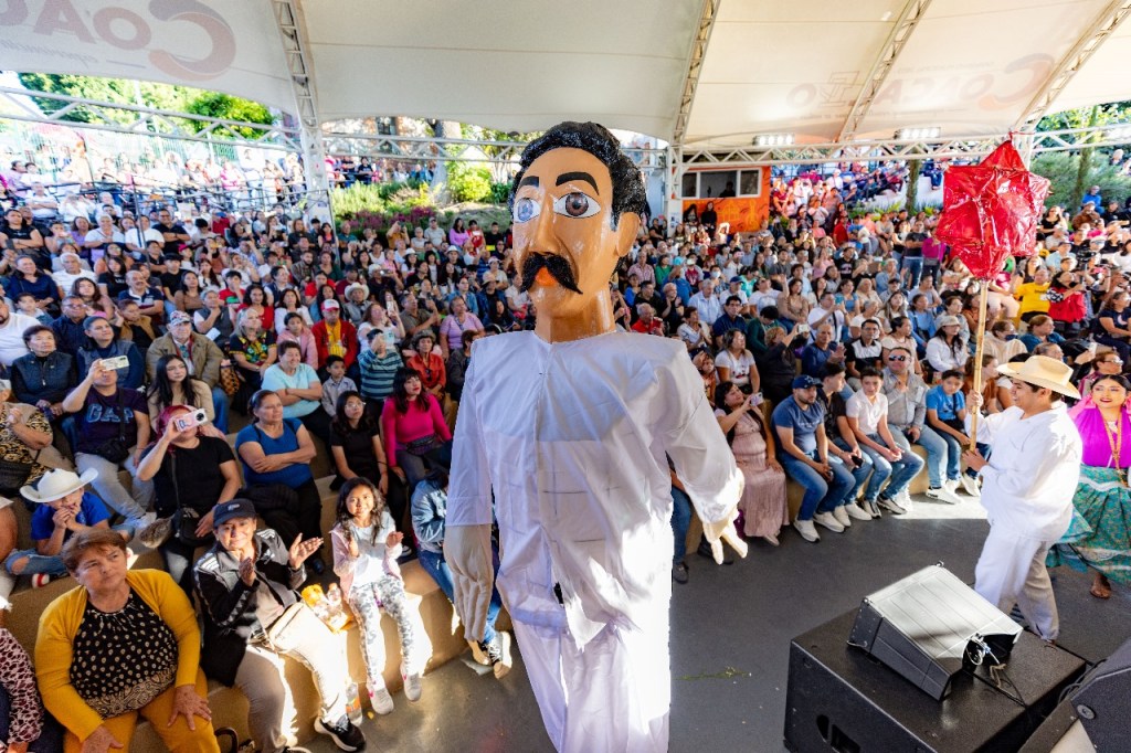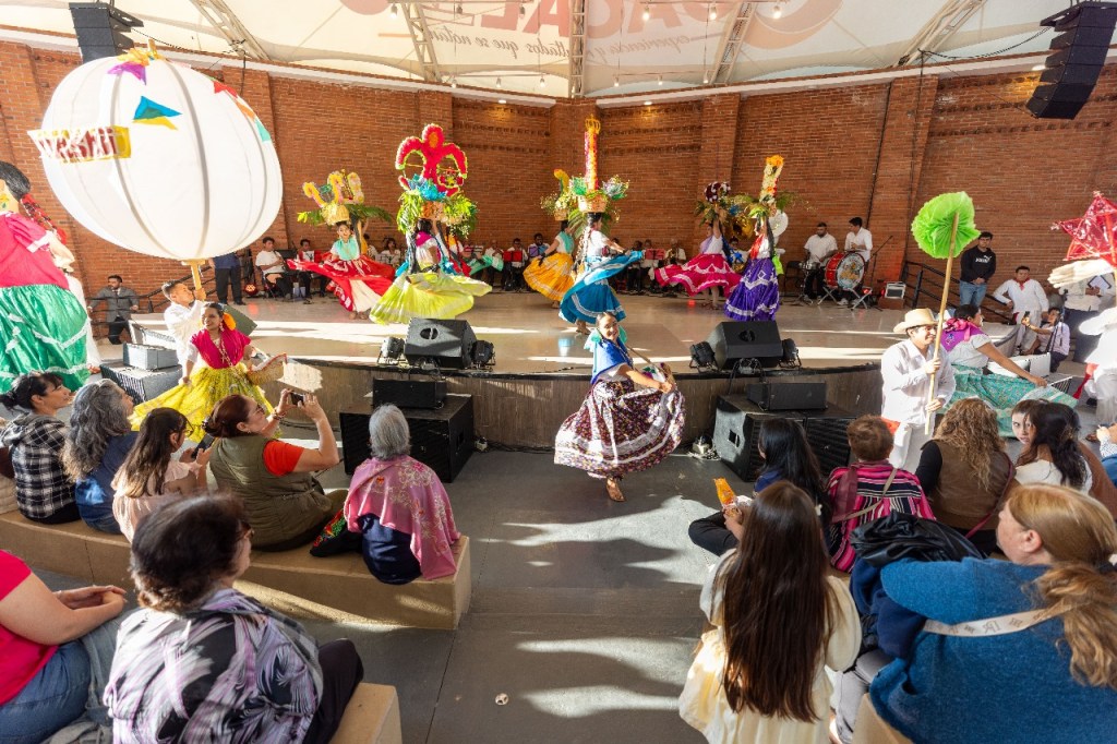 Con una calenda, los danzantes, al ritmo de la música de viento, ataviados con trajes coloridos y figuras gigantes, invitaron a la fiesta en el centro cultural, donde cientos de personas disfrutaron con alegría de la presentación de La Guelaguetza, una celebración que simboliza la hermandad, la solidaridad y la cooperación entre las comunidades de las diversas regiones de Oaxaca.