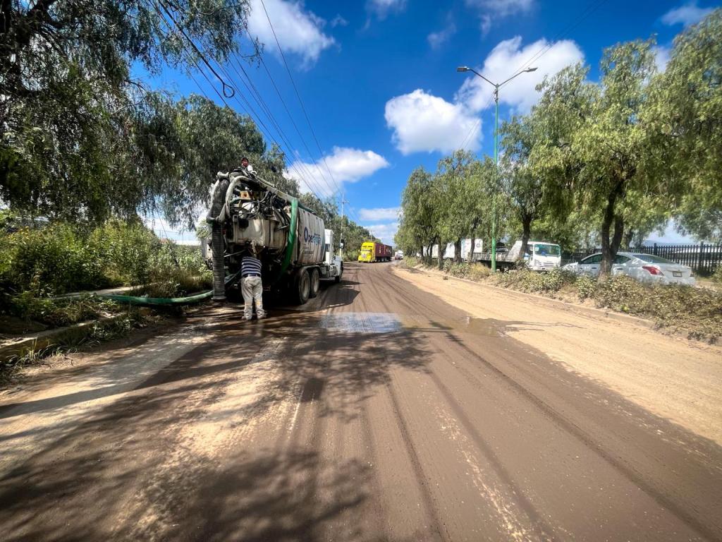 Los trabajos continuaron el día de ayer, martes 14, con la reparación del drenaje y la succión de agua acumulada, labores efectuadas con el apoyo de vehículos váctor.