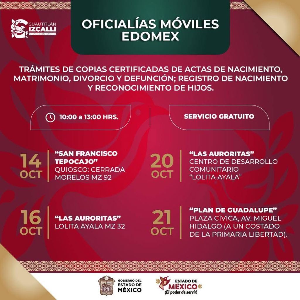 Cuautitlán Izcalli, Méx.- Los programas de colaboración que el Gobierno del Estado de México y el Gobierno Municipal de Cuautitlán Izcalli realizan en beneficio de la población, durante este mes se expedirán copias certificadas sin costo a través de las Oficialías Móviles.