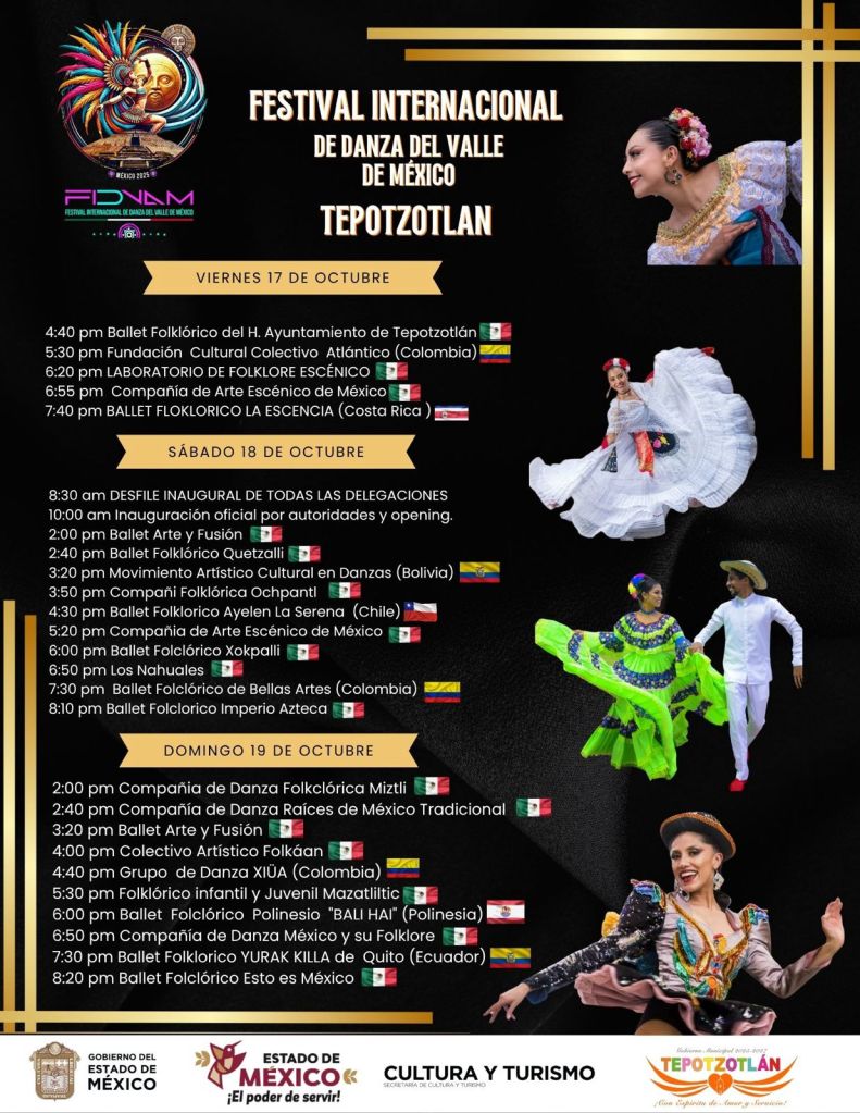 El Festival Internacional de Danza del Valle de México, se llevará a cabo en Tepotzotlán los días 17, 18 y 19 de octubre del presente.