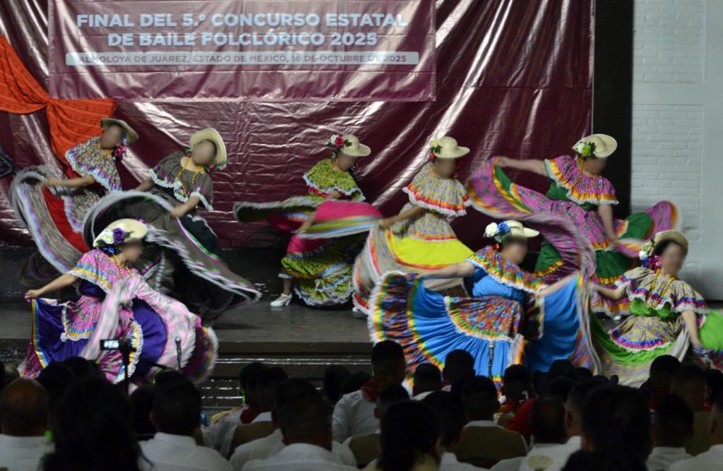 Almoloya de Juárez, Méx.- Con el objetivo de promover y garantizar una efectiva reinserción social, a través de la Subsecretaría de Control Penitenciario la Secretaría de Seguridad de Estado de México (SSEM) realizó la Final del 5o Concurso Estatal de Baile Folclórico 2025.
