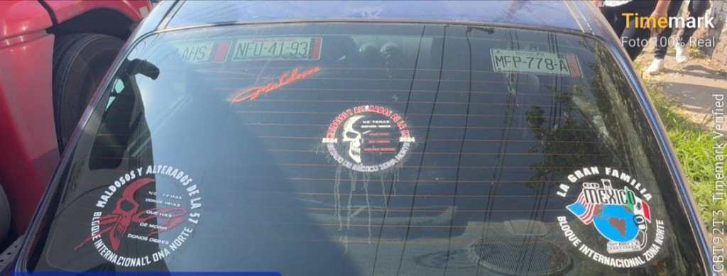 Los detenidos viajaban en autos y motocicletas que portaban calcomanías de supuestas agrupaciones, vinculadas a Los 300 como Monitos Trucking, Maldosos y Alterados de la 51 Bloque Internacional Zona Norte y GOET en las que se han fragmentado tras detenciones de líderes que ha realizado la policía municipal y Marina.